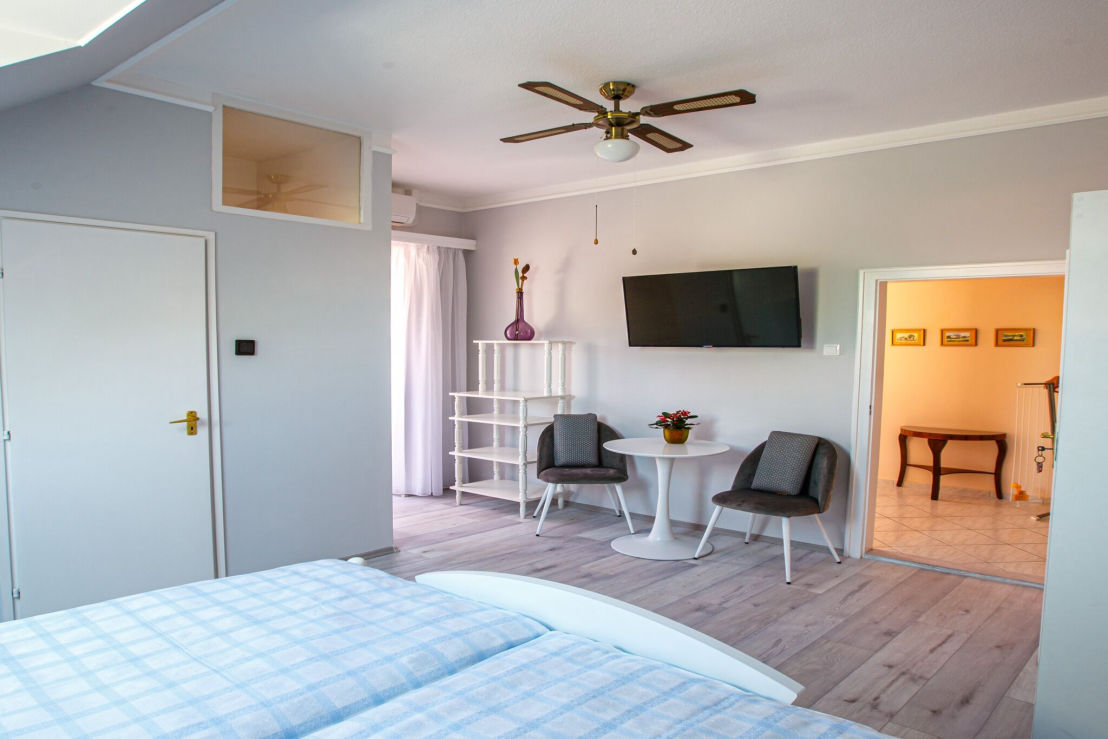 - Klímával, mennyezeti ventilátorral, televízióval, Wifivel és hűtővel felszerelve